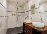 Ruime lichte hal met modern toilet met fontein, moderne badkamer met ruime inloopdouche voorzien van stort- en handdouche en glazen wand, fraai wastafelmeubel met 2 kristallen waskommen. Riante L-vormige woonkamer met suiteseparatie, aan de voorzijde over de volledige breedte met uitzicht over het groen, het gedeelte aan de achterzijde is gemakkelijk af te scheiden tot een extra slaapkamer en heeft een deur naar het ruime (ca, 7 m²) en zonnige achterbalkon. De royale woonkeuken heeft veel werk- en kastruimte, een eiland en is voorzien van alle apparatuur, vanuit hier is eveneens het balkon te bereiken. Tevens aan de achterzijde een heerlijk ruime slaapkamer. Alle kamers zijn voorzien van fraaie laminaatvloeren.