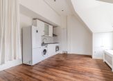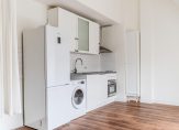 Centrale entree op de begane grond, trappenhuis, entree appartement op de tweede etage, hal met doorgang naar de badkamer voorzien van een douche, toilet en wastafel. De woon-/eetkamer beschikt over een open keuken voorzien van inductiekookplaat, oven, vaatwasser, afzuigkap en koelkast. Vanuit de woonkamer toegang tot de slaapkamer aan de voorzijde maar toch heel rustig dankzij het aangebrachte dubbel glas en voorzien van een vaste kast. Daarnaast beschikt het complex over een centrale wasruimte en een gezamenlijke buitenruimte aan de achterzijde waar tevens fietsen kunnen worden gestald.