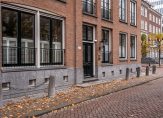 Heerlijk lichte woonkamer met aan het eind een verhoging. Franse balkons, shutters en een schitterend uitzicht over één van de mooiste en karakteristieke Haagsche grachten.