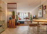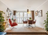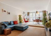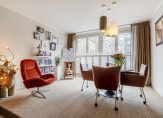 The wonderfully light living room features a subtle raised area at the far end, French balconies, shutters and a magnificent view over one of The Hague’s most beautiful and characteristic canals.
