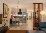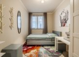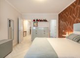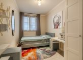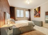 The first well-proportioned bedroom, ideal as a guest room or study, is situated at the rear of the building and features a beautiful herringbone PVC floor, which runs throughout the apartment, except for the sanitary areas.