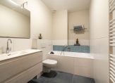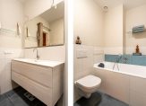 The second en-suite bathroom features a delightful bathtub, towel radiator, wide vanity unit, a second toilet, mechanical ventilation and an illuminated mirror.