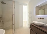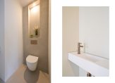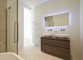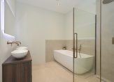 Vanuit de overloop de trap naar de tweede etage, overloop met apart toilet en technische ruimte, zijkamer aan de voorzijde en ruime slaapkamer aan de achterzijde met een gastenbadkamer op de overloop voorzien van fraai tegelwerk, meubel met waskom, inloopdouche met glazen wand en handdoekradiator. Aan de achterzijde de hoofdslaapkamer met openslaande deuren naar terras en eigen badkamer voorzien van hoogwaardig tegelwerk, stijlvol ligbad, inloopdouche met glazen wand, handdoekradiator, spiegel met verlichting, meubel met twee waskommen en ingebouwd leidingwerk.