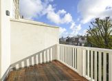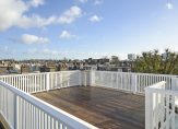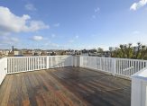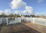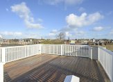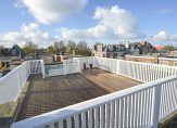 Het dakterras is via een vaste trap met elektrisch daklicht te bereiken. Het terras is aangelegd met houten vlonders en karakteristieke houten balustrade.