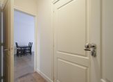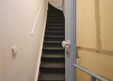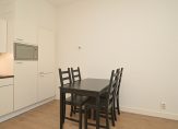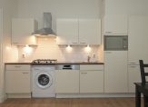 Gezamenlijke entree op de begane grond, hal met de meterkast, trap naar de 1e etage, entree appartement. Ruime en lichte woonkamer met een open keuken voorzien van inbouwapparatuur; combi-oven, gasfornuis, koelkast met vriesvak, wasmachine, wasemkap en vaatwasser.