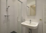 Erker raam om een gezellig zitje te maken en de winkelstraat te bewonderen. Vanuit de gang de keurig betegelde badkamer voorzien van een wastafel, wandcloset, handdoekradiator en inloopdouche.