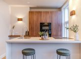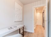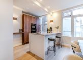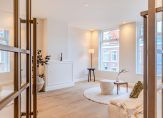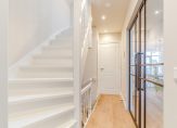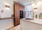 Gezamenlijke entree, trap naar de eerste etage, entree appartement, trap naar de tweede etage, hal met apart toilet en zijkamer aan de voorzijde. Vanuit de hal fraaie deuren met glasroedeverdeling naar de woon-/eetkamer voorzien van fraaie vloer, openslaande deuren naar achterterras en schitterende open keuken voorzien van kookeiland met Bora inductiekookplaat, Quooker, composiet werkblad, vaatwasser en wandgedeelte met walnootlook kasten, Bosch bakoven, Bosch inbouwmagnetron en koel-/vriescombinatie.