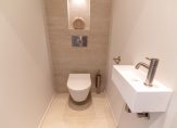 Entree van het appartementencomplex, trap of lift naar de tweede etage, entree van het appartement, ruime L-vormige hal, technische ruimte met wasmachineaansluiting en cv-ketel en apart toilet voorzien van fraai tegelwerk, wandcloset en fonteintje. Aan de voorzijde de schitterende woonkamer met ca. 2,75 meter hoge plafonds, spectaculaire lichtinval dankzij grote raampartijen en voorbalkon pal zuidwest met uitzicht over de Raamweg en groene Koninginnegracht. In de woonkamer de luxe open keuken voorzien van lichtgrijze kasten, keramiek werkblad, Bora inductie kookplaat met geïntegreerde afzuiging, Quooker en Siemens koel-/vriescombinatie, combioven en vaatwasser. De twee slaapkamers zijn rustig gelegen aan de achterzijde met vrij uitzicht over de tuinen van de Bachmanstraat. De tussengelegen badkamer is voorzien van hoogwaardig Italiaans tegelwerk, luxe badkamermeubel met wastafel en twee kranen, ronde spiegel met verlichting en inloopdouche met glazen wand.