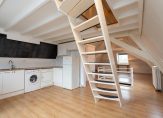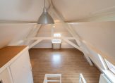Gezamenlijke entree op de begane grond, trap naar de tweede etage, eigen entree appartement, trap naar de derde etage, entree ruime woonkamer, tussengelegen badkamer welke is voorzien van toilet en douche. Aan de achterzijde de ruime open keuken voorzien van oven, 4-pits gasfornuis, afzuigkap, wasmachine, koelkast en vriezer. Vanuit de woonkamer een vaste trap naar de vide die door de vorige bewoner als slaapverdieping werd gebruikt.