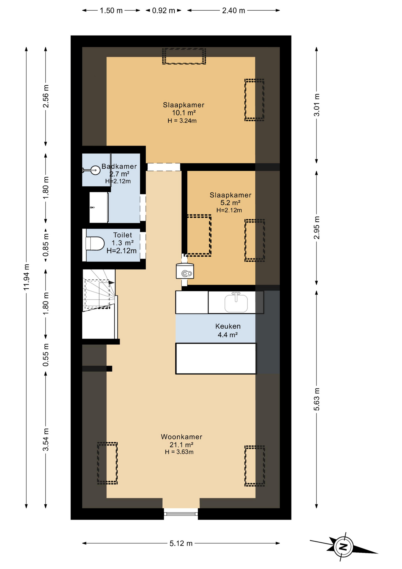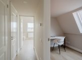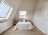 Gezamenlijke entree op de begane grond, trap naar de tweede etage, eigen entree, trap naar de derde etage, entree ruime woonkamer. De nieuwe luxe open keuken is voorzien van Siemens inductiekookplaat met ingebouwde afzuiging, koelkast, vriezer en combioven. De moderne tussengelegen badkamer is voorzien van fraai tegelwerk, ruime douche, wastafel met meubel en een verlichte spiegel. Aan de achterzijde de rustig gelegen slaapkamer van ca. 10 m², welke door de raampartijen is voorzien van een gunstig lichtinval. Tussen gelegen de tweede slaapkamer, welke ideaal zou kunnen dienen als werkkamer.