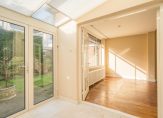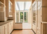Entree van de woning, hal met vestibule, gang met trapkast en toilet. De woon-/eetkamer en suite beschikt over gunstige lichtinval dankzij drie erkers en veel raamoppervlak, suite separatie met vaste kasten en schuifdeuren met charmante roedeverdeling en serre grenzend aan de zonnige achtertuin van ca. 100 m² met veel privacy die pal zuidwest is gelegen. De garage is gunstig gepositioneerd in de hoek van het perceel en beschikt over een karakteristiek zadeldak. Aan de achterzijde de uitgebouwde keuken die desgewenst middels constructieve doorbraak verbonden kan worden met de suite aan de achterzijde. Vanuit de gang een vaste trap naar de kelder die is aangelegd over de volledige lengte van de woning en deels gebruikt wordt als stookruimte met cv-ketel en geschakelde boiler.
