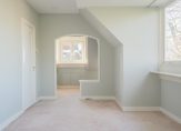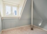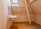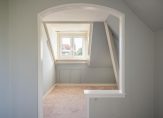 Vanuit de overloop de trap naar de 2e etage, overloop met apart toilet, schitterende kamer aan de oostzijde met hoge dakkapel en nis onder kapconstructie met dakkapel en bergruimte. Aan de voorzijde nog een leuke slaapkamer waarbij het plafond eventueel doorgebroken kan worden om een nokhoogte van meer dan 5 meter te bereiken. Deze etage beschikt nog over een eenvoudige tweede badkamer en een schuiftrap naar de vliering met een unieke nokhoogte van ca. 2,90 meter.