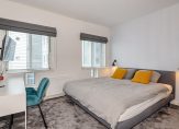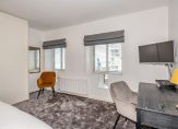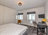 Two well-proportioned bedrooms provide ample space for wardrobes, double beds, and a desk.
