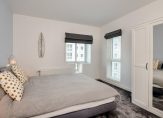 Twee goede maat slaapkamers met plek voor kledingkasten, tweepersoonsbedden en een bureau.