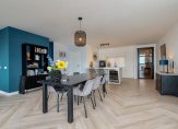 Vaste diepe kast voor al uw voorraad, stofzuiger en schoonmaakspullen. Ruimte voor een riante eetkamertafel. Fraaie pvc visgraat vloer.