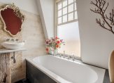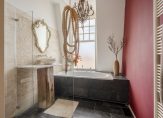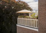 Voorts vinden we vanaf de overloop de ruime hoofdslaapkamer met 2 ingebouwde kasten en openslaande deuren naar een heerlijk zonnig en buitengewoon prive gelegen dakterras pal Zuid Oost met vrij uitzicht over het groene binnen gebied, moderne badkamer met groot ligbad, inloopdouche met glazen wanden, drain en regendouche, vaste wastafel met meubel, handdoekradiator, getrommeld tegelwerk en antracietkleurige natuurstenen vloer.