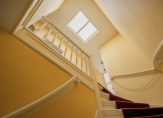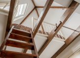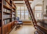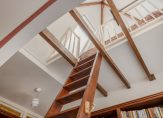 bijgetrokken gedeelte ingebouwde bibliotheek kasten en een vaste trap naar de open gewerkte vliering cq dakopstand met een lounge ruimte en “Velux” dakraam met toegang tot het dak.