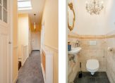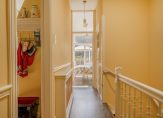 Open portiek naar 1e etage, entree woning ruimte voor de trap met uitgebreide elektrische installatie, trap naar 2e etage alwaar ruime lichte L-vormige overloop met groot daklicht, diepe vaste kast, was-,stook- en bergruimte met Cv- combi ketel en opstelplaats wasmachine en droger, modern toilet met wandcloset, fontein, fraai getrommeld tegelwerk en antraciet kleurige natuurstenen vloer.
