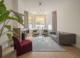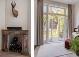 Diepe voortuin met voldoende plek voor fietsen, entree met vestibule voorzien van meterkast met uitgebreide elektrische installatie, glas in lood ramen aan beide zijden, gerestaureerde granieten vloer en tochtdeur naar ruime hal met trap naar de kelder en toilet voorzien van fraai tegelwerk, wandcloset en fonteintje. Vanuit de gang de karakteristiek kamers en suite met schitterende lichtinval, meer dan 3 meter hoger ornamenten plafonds, eiken lamelparketvloer, stenen schouw met werkende allesbrander, glas in lood bovenlichten, suite separatie met vaste kasten en schuifdeuren naar de suite aan de achterzijde. Deze is ingericht als eetkamer en beschikt over openslaande deuren naar bijzonder hoogwaardig aangelegde achtertuin die gunstig is gelegen op de middag- en avondzon. De tuin beschikt over fraaie tuintegels, diverse terrassen en een houten berging. De doorgebroken luxe keuken beschikt over dezelfde gerestaureerde granieten vloer, composiet werkblad, brede Siemens inductiekookplaat, koel-/vriescombinatie, vaatwasser, combioven, koffiecorner en deur naar de achtertuin.