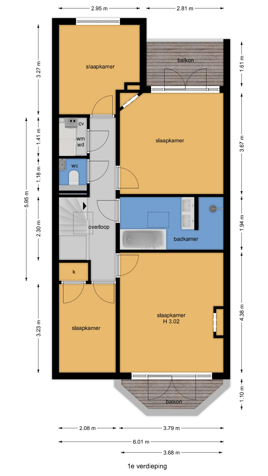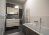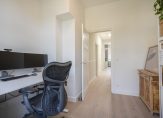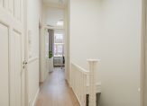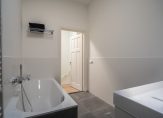 Vanuit de hal de trap naar de 1e etage, overloop met groot daklicht, technische ruimte, apart toilet met hoogwaardig tegelwerk, wandcloset en fonteintje. De hoofdslaapkamer is aan de achterzijde gesitueerd en beschikt over openslaande deuren naar eigen balkon, de tweede ruime slaapkamer is gelegen aan de voorzijde en beschikt over eigen balkon met uitzicht over de Van Aerssenstraat. Verrassend ruime derde slaapkamer aan de achterzijde en luxe tussengelegen badkamer voorzien van grote witte wandtegels, antractiekleurige plavuizen, ruim ligbad, handdoekenradiator, daklicht, inloopdouche met nis en badkamermeubel met ingebouwd leidingwerk en wastafel.