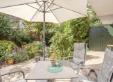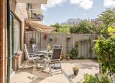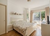 Aan de achterzijde van dit heerlijke appartement bevinden zich de twee slaapkamers en de keuken welke allen toegang hebben tot de schitterende tuin. De tuin heeft een ruim terras, weelderige planten, gelegen op het Zuidoosten en ligt beschut.