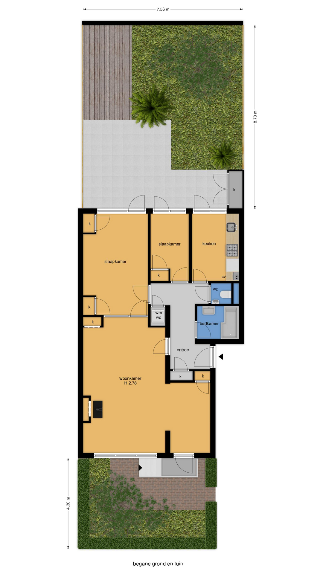 Voortuin voor het stallen van uw fietsen. Centrale afgesloten entree met bellentableau, brievenbussen, entree appartement, ruime hal met garderobenis, vaste kast met wasmachine en droger opstelplaats en toegang tot alle vertrekken.