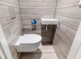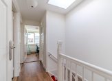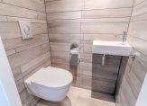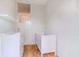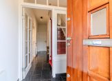 Entree, vestibule met plavuizen vloer, tochtdeur naar gang eveneens met plavuizen vloer, modern toilet met fontein, bergruimte met opstelplaats CV-ketel en aansluiting voor wasmachine en droger.