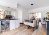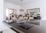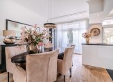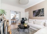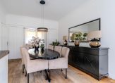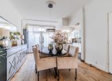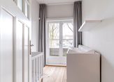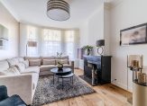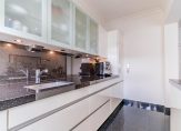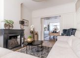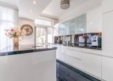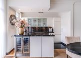 Ruime lichte kamers en suite voorzien van suiteseparatie met schuifdeuren met glas-in-lood, 4 vaste kasten, erker met glas-in-lood bovenlichten, open haard in marmeren schouw, aan de achterzijde een luxe ruime open keuken voorzien van kwalitatief hoogwaardige inbouwapparatuur waaronder een wijnkoelkast.
