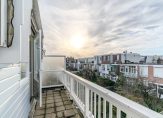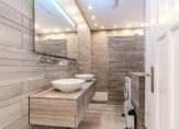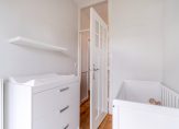 Op de 1 etage bevinden zich in totaal 4 slaapkamers, aan de achterzijde een ruime hoofdslaapkamer en een zijkamer beiden met openslaande deuren naar het balkon over de volledige breedte van de woning, aan de voorzijde eveneens een ruime slaapkamer en een zijkamer. De tussengelegen moderne luxe badkamer is voorzien van een ruime inloopdouche, een wastafelmeubel met 2 waskommen, opstelplaats voor een wasmachine, handdoekradiator. Op de overloop bevindt zich een apart toilet met fonteintje.