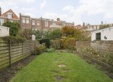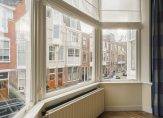 Entree voorzien van vestibule met meterkast, hal met ruime woonkamer voorzien van 3,20 hoge balkenplafonds, open haard, fraai halfrond kozijn aan de voorzijde met gunstige lichtinval en karakteristieke glasroedeverdeling, open keuken in U-opstelling met schitterende achtertuin zeer vrij gelegen dankzij de omliggende percelen die eveneens riant van formaat zijn (zeker voor het Statenkwartier). Voorts tussengelegen hal met toilet en badkamer aan de achterzijde voorzien van ligbad, wastafel en groot kozijn met uitzicht over de tuin.