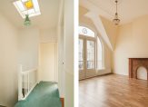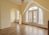 Vanuit de hal de trap naar de eerste etage, riante tussengelegen overloop, riante slaapkamer aan de voorzijde voorzien van eveneens unieke plafondhoogte van ca. 3,24 meter met bijgetrokken zijkamer. De tweede riante slaapkamer is aan de achterzijde gelegen voorzien van ingebouwde kasten en groot raamkozijnen met vrij uitzicht over de achtergelegen percelen. Verder op deze etage een overloop met apart toilet, douche en tweede badkamer voorzien van ligbad, dubbele wastafel en achterbalkon.