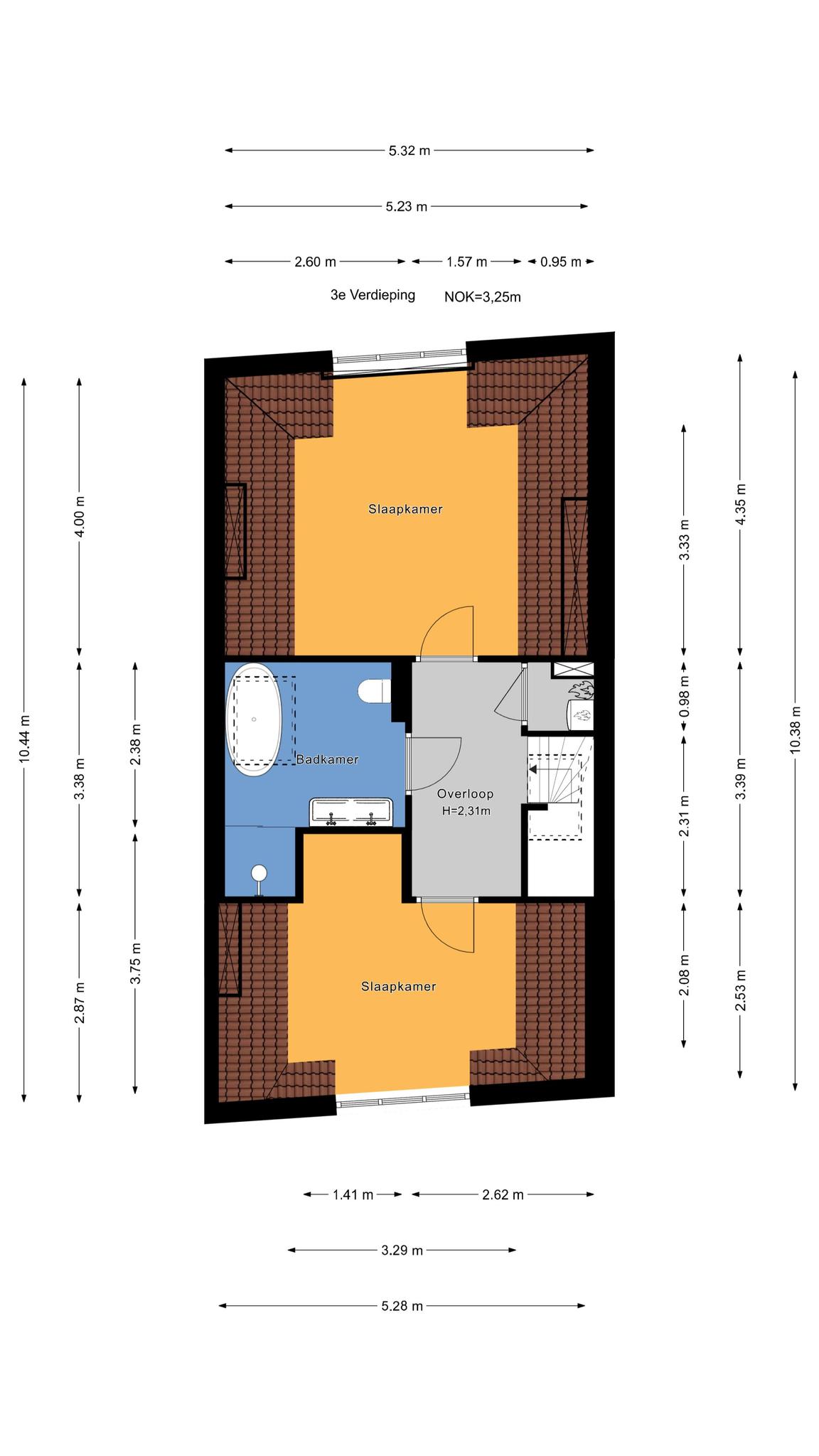 Vanuit de overloop de trap naar de derde etage, overloop met daklicht en technische ruimte, riante slaapkamer aan de voorzijde met dakkapel en tweede ruime slaapkamer gelegen aan de achterzijde eveneens met dakkapel. Tot slot de stijlvolle badkamer voorzien van fraai tegelwerk, meubel met dubbele wastafel, vrijstaand ligbad handdoekradiator en inloopdouche met glazen wand.