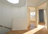 Vanuit de hal de trap naar de eerste etage, riante hoofdslaapkamer aan de achterzijde over de volle breedte met balkon en tweede goed formaat slaapkamer aan de voorzijde eveneens met eigen balkon. De badkamer op deze etage is voorzien van keurig tegelwerk, dubbele wastafel, toilet, douche cabine, ligbad en natuurlijk licht. Het valt op dat deze eerste etage over vrijwel dezelfde hoge plafonds beschikt als de begane grondvloer wat bijdraagt aan een zeer ruimtelijke beleving.