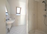 Vanuit de overloop de trap naar de tweede etage, overloop met groot rond daklicht, deze etage is efficiënt ingedeeld met nog drie slaapkamers waar in alle drie gemakkelijk een 2-persoonsbed past. Verder op deze etage de technische ruimte en de tweede badkamer met douchecabine, toilet, wastafel en berging in de knieschot.