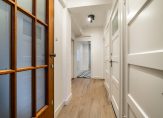 Gesloten portiek met karakteristiek trappenhuis, trap naar de tweede etage, entree appartement, ruime L-vormige hal met garderobekast en apart toilet, deur naar woonkamer gelegen aan de voorzijde met grote raampartij en vaste kasten, ruime eerste slaapkamer gelegen aan de achterzijde, dichte keuken aan de achterzijde met eenvoudig keukenblok en deur naar achterbalkon dat op het zonnige zuidwesten is gelegen. De tweede slaapkamer is eveneens aan de achterzijde gelegen en beschikt over een beknopte badkamer.