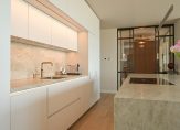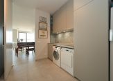 Dit stijlvolle appartement met een eigen inpandige parkeerplaats, heeft de allure van een penthouse vanwege het eerstelijns zeezicht, de ligging op de vierde etage en een spectaculair zonneterras van ca. 50 m² dat als verlengstuk van de living kan worden beschouwd. Het woonoppervlak van ca. 159 m² is uiterst efficiënt verdeeld over een schitterende woonkamer met uitzonderlijk luxe keuken, drie riante slaapkamers, allen met zeezicht en directe toegankelijkheid tot het zonneterras, twee badkamers en een onmisbare bijkeuken die voor veel bergruimte zorgt.