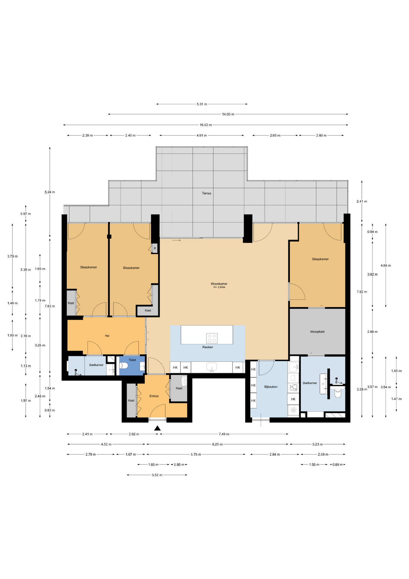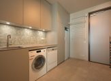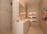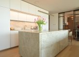 Indien gewenst is er separaat een garagebox van ca. 15 m² te koop die op loopafstand (<500 meter) van het appartementencomplex is gelegen. Indeling: Imposante entree van het complex met fraaie afwerking en gemeenschappelijke faciliteiten zoals een coffee lounge met uitzicht op zee, een eSafeWall voor pakketjes en een surfruimte met bergplaats voor surfboards en toebehoren en met afspoelbak en een douche. Vanuit de gezamenlijke hal is er een directe liftverbinding naar de vierde en vijfde etage. De entree van het appartement is voorzien van maatwerk garderobekasten, nis met kwartsietblad en bronskleurige, stalen taatsdeur naar de stijlvolle woonkamer met adembenemend vrij uitzicht over de Noordzee. De lichtinval is ronduit fantastisch te noemen dankzij de grote raampartijen. Vanuit de woonkamer, waar de kleurstelling zoveel mogelijk in harmonie is met de omgeving, is via een schuifpui het zonneterras van ca. 50 m² te bereiken, dat beschouwd kan worden als verlengstuk van de woonkamer. Het betreft onbetwist één van de mooiste uitzichten die Den Haag te bieden heeft met een variatie tussen zeezicht, ondergaande zon, het havenhoofd, de duinen, de vuurtoren en Scheveningen Dorp. Een andere eyecatcher van de woonkamer is de schitterende open keuken met kookeiland voorzien van uniek kwartsiet werkblad dat doorloopt op de lades, een overstek met zitgedeelte en een Bora inductiekookplaat met geïntegreerde afzuiging. Het wandgedeelte is vernuftig ingedeeld waardoor de apparatuur grotendeels wegvalt en er een zeer rustig geheel is ontstaan. Dit wandgedeelte rondom een eveneens kwartsiet aanrechtblad is voorzien van Led-verlichting, spoelbak met Quooker, Siemens stoomoven, bakoven, vaatwasser en hoog model koelkast. De hoofdslaapkamer met design deurgreep heeft de sfeer van een luxe suite met totaal ca. 35 m² verdeeld over een ruime slaapkamer met wederom zeezicht. Er is een bronskleurig afgewerkte schuifdeur van staal en glas naar de schitterende walk-in closet met maatwerk kasten en fraaie inbouwverlichting. Via eenzelfde bronskleurige schuifdeur van staal en glas is de badkamer te bereiken, die is voorzien van een hoogwaardig meubel met Gessi kranen, een nis met wandcloset, fraai tegelwerk en een inloopdouche met rainshower en ingebouwd leidingwerk. De zuidzijde van het appartement is afgescheiden door eenzelfde bronskleurige schuifdeur van staal en glas. Hier is een tweede hal te vinden met gastentoilet voorzien van fraai tegelwerk, wandcloset en fontein. Tevens een gastenbadkamer voorzien van fraai tegelwerk, een nis, glazen douchewand, rainshower, handdoekradiator en badkamermeubel met wastafel. Verder in deze hal een maatwerk kastenwand die dankzij een slimme indeling wordt gebruikt als werkruimte. De tweede en derde slaapkamer zijn aan de voorzijde gelegen en beschikken dus ook over een fenomenaal zeezicht en als eerder vermeld directe toegang tot het zonneterras, tekenend voor de unieke ligging en indeling van dit appartement. De slaapkamers beschikken beide over vernuftige maatwerkkasten en sluiten aan bij hoogwaardige afwerking van de rest van het appartement. Bij de inpandige berging/bijkeuken zijn er geen concessies gedaan in de afwerking. Deze ruimte is voorzien van een design deurgreep, keukenblok met spoelbak, plavuizen vloer, inbouwkasten, opstelplaats voor vriezer, wasmachine en droger. Vrij uitzonderlijk is dat deze berging/bijkeuken een eigen deur naar de gang heeft wat zeer praktisch is in het dagelijks gebruik. Het gehele appartement heeft een hand-picked eikenhouten parketvloer en is drempelloos. Tot slot is er de parkeerplaats met eigen laadpaal die per lift is te bereiken en is gelegen in de onderbouw van het complex. Hier is ook plaats voor deelmobiliteit. Aanvullende informatie: - ‘s-Gravenhage sectie AK complexaanduiding 11674 index A-58 - Parkeerplaats sectie AK complexaanduiding 11674 index A-78 - Woningborggarantie - Niko domotica systeem - Fietsenberging op de begane grond inclusief deelmobiliteit - Eigen grond - Energielabel A+++ - Bouwjaar 2023, inclusief zonnepanelen - Zeer hoogwaardig deurbeslag - Houten deurkozijnen aan de binnenzijde - Maatwerk kasten gerealiseerd door interieurbouwer - Per separate lift te bereiken - Volledig voorzien van dubbele beglazing, HR++ en WTW unit - Volledig voorzien van vloerverwarming en vloerkoeling via WKO systeem - Actieve VVE met maandelijkse bijdrage van € 401,99 - Algemene verkoopvoorwaarden van toepassing - Oplevering in overleg - Garagebox Nieuwe Laantjes te koop voor 99.000 kk.