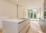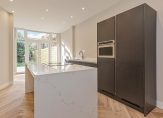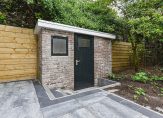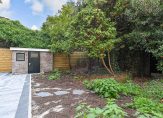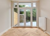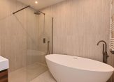Aan de achterzijde een bijkeuken met opstelplaats voor cv-ketel, wasmachine en droger. De hoofdslaapkamer is eveneens rustig gelegen met openslaande deuren naar de tuin en eigen badkamer voorzien van fraai vrijstaand ligbad, hoogwaardig tegelwerk, inloopdouche met glazen wand, handdoekradiator en badkamermeubel met wastafel. Aan de achterzijde nog een tweede goed formaat slaapkamer die eveneens over een deur naar de tuin beschikt.