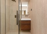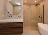 Aan de voorzijde nog een riante slaapkamer voorzien van erker met gunstige lichtinval. In de hal is nog een tweede badkamer gerealiseerd die eveneens hoogwaardig is afgewerkt en voorzien van fraai tegelwerk, inloopdouche en meubel met wastafel.