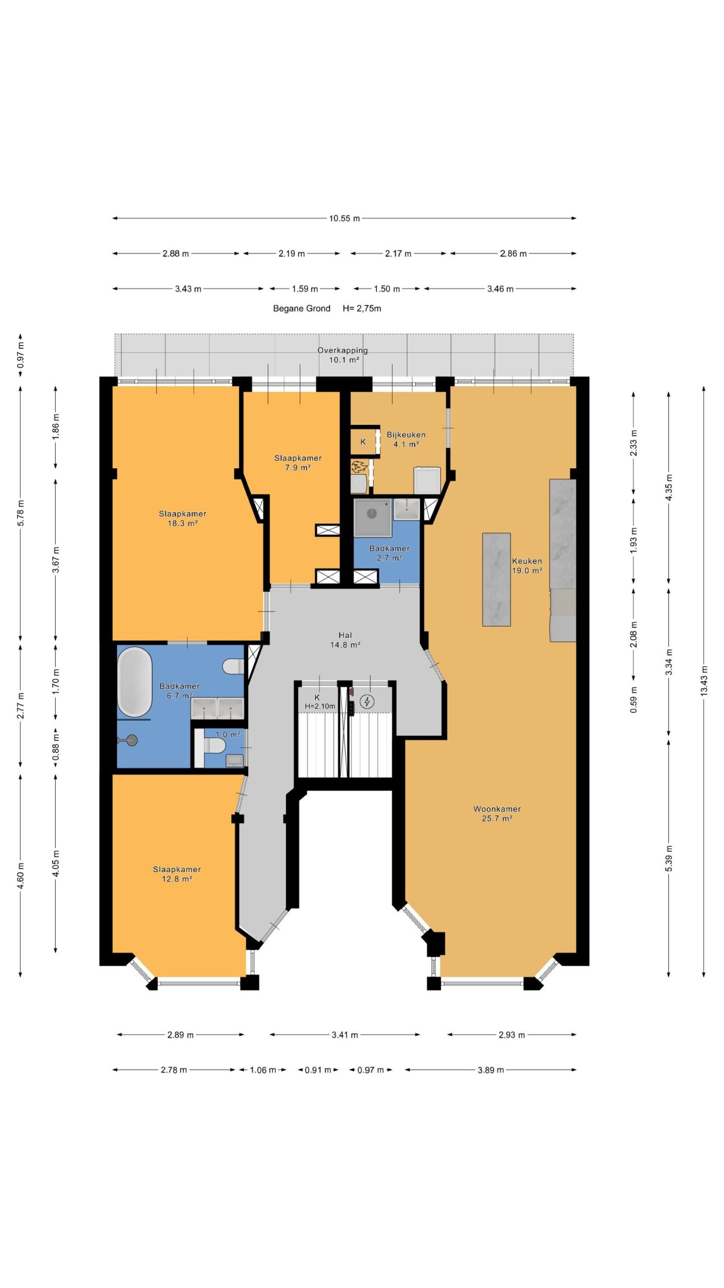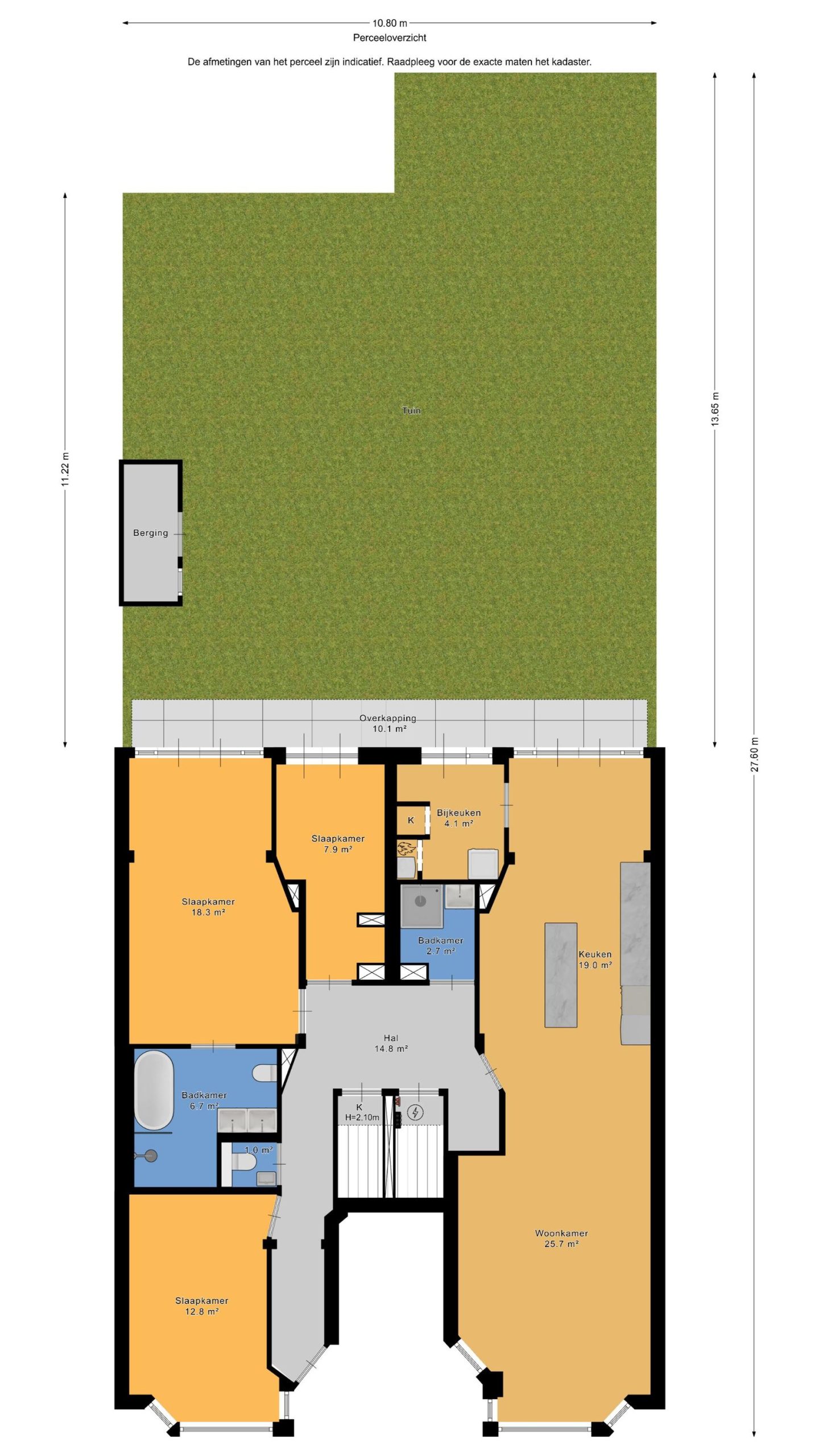 Eigen entree op straatniveau, ruime hal met meterkast, trapkast en apart toilet voorzien van fraai tegelwerk, wandtoilet en fonteintje. Vanuit de hal een lichtgrijze stalen deur naar de woonkamer met zeer gunstige lichtinval, luxe open keuken voorzien van kookeiland met hardstenen werkblad, Quooker, 4-pits inductiekookplaat met geïntegreerde afzuiging, Smeg combioven, koel-/vriescombinatie en vaatwasser. Vanuit de keuken openslaande deuren naar enorme achtertuin van ca. 135 m² met schuur, weinig inkijk aan de achterzijde en zeer gunstig op het zuidoosten gelegen. De zitkamer is aan de voorzijde gelegen en beschikt over gunstige lichtinval dankzij erker met raampartij.