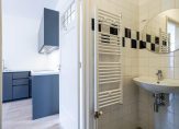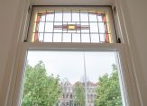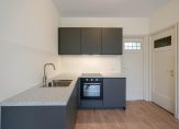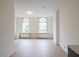 Entree van het complex op straatniveau, trap naar de 1e etage, entree appartement, woonkamer met hoog plafond en gunstige lichtval, karakteristieke glas in lood bovenlichten en nieuwe open keuken voorzien van inductie kookplaat, oven, rvs gootsteen, vaatwasser en afzuigkap. De slaapkamer is rustig aan de achterzijde gelegen en beschikt over hoog plafond, inbouwkast en Frans balkon. De moderne badkamer is voorzien van fraai tegelwerk, wandcloset, wastafel en douche.