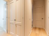 Entree van het appartementencomplex, entree van het appartement, aan de voorzijde de schitterende woonkamer met ca. 3,35 meter hoge plafonds, spectaculaire lichtinval dankzij schitterende raampartij en luxe open keuken voorzien van beige kasten, composiet werkblad, inductie kookplaat, Quooker en Siemens koel-/vriescombinatie, combioven en vaatwasser. De slaapkamers zijn uitzonderlijk rustig vanwege het aangebrachte triple glas. Verder in deze woning een hal met apart toilet voorzien van wandcloset, fraai tegelwerk en fonteintje. Vanuit de hal de technische ruimte met cv-ketel en opstelplaats voor wasmachine. De badkamer is voorzien van hoogwaardig Italiaans tegelwerk, luxe badkamermeubel met wastafel, ronde spiegel met verlichting en inloopdouche met glazen wand.