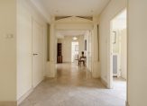 Entree van het complex op straatniveau, trap naar de eerste etage, entree appartement, imposante hal van het appartement met apart toilet voorzien van wandcloset en fonteintje. Aan de voorzijde de woonkamer gelegen op het zonnige zuidwesten met voorbalkon, lamelparketvloer en stenen schouw. Tussen gelegen slaapkamer die vanuit de hal en de woonkamer is te bereiken die tevens zeer geschikt is als ruime werkkamer en riante slaapkamer aan de voorzijde met eigen badkamer voorzien van fraai tegelwerk, toilet (sanibroyeur) en douche.