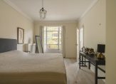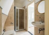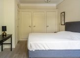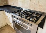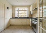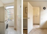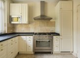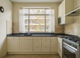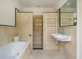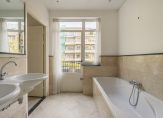 Aan de achterzijde de hoofdslaapkamer met ingebouwde kastenwand, deur naar terras en badkamer voorzien van inloopdouche, ligbad, douche en deur naar balkon. De dichte keuken is eveneens rustig gelegen aan de achterzijde en voorzien van 5-pits rvs gasfornuis met oven, koel-/vriescombinatie, inbouwmagnetron en vaatwasser.