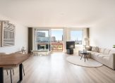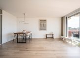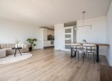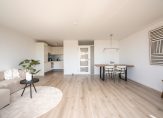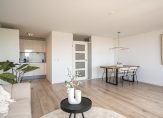 Heerlijk lichte woonkamer met een kantel kiepraam en kunststof schuifpui met HR+++ glas naar het balkon waar u kunt genieten van het adembenemende zeezicht. Ruimte genoeg voor een zithoek en een grote eetkamertafel. Alle wanden en plafonds zijn strak gestuukt.