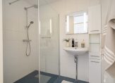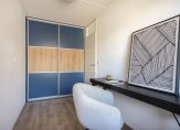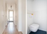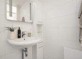 Separaat vrij hangend toilet met de mogelijkheid van het plaatsen van een hoekfonteintje (watervoorziening achter de tegels). Vaste kast met de Ferroli combiketel. De ruime master bedroom en de handige homeoffice of schattige kinderkamer zijn gelegen aan de achterzijde van het gebouw.