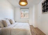 Separate wall-mounted toilet with the option to install a corner sink (water supply available behind the tiles). Built-in cupboard housing the Ferroli combi boiler. The spacious master bedroom and the handy home office or charming child’s bedroom are located at the rear of the building.