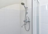 ruime overloop met toilet en fonteintje en 2e badkamer met douche en wastafel