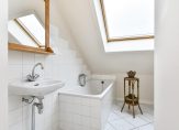badkamer met ligbad met wastafel, Velux dakraam en bergruimte ca. 263 x 190