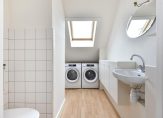 bathroom with separate bath with washbasin, Velux skylight and storage space approx. 263 x 190